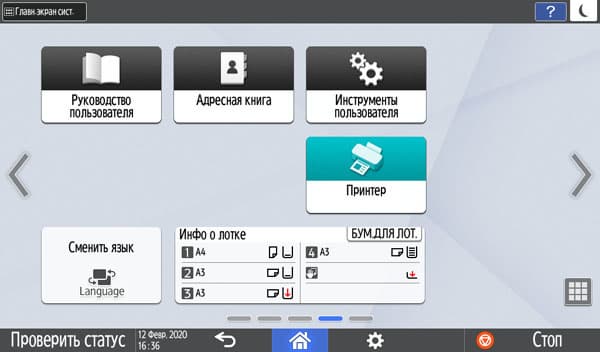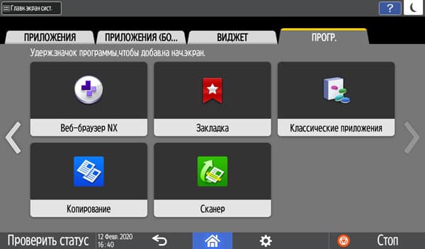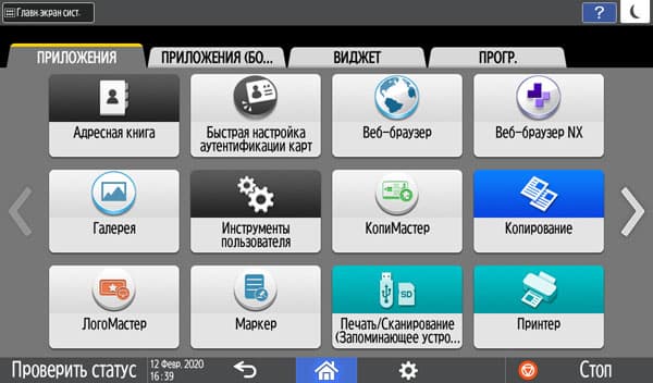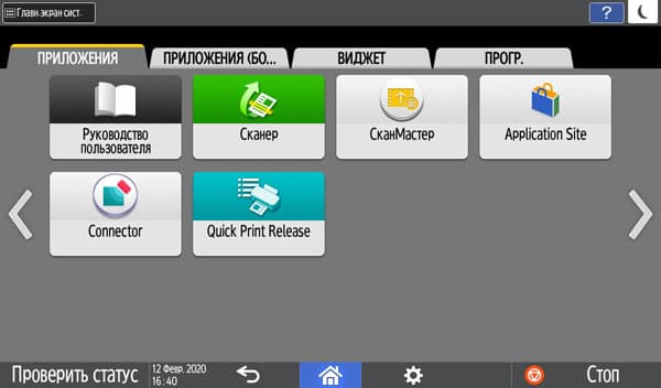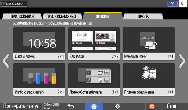 Можно вывести и увеличенные кнопки-ярлыки для определенных операций, а также виджеты — например, информационное поле с отображением состояния лотков.