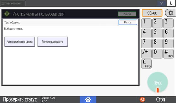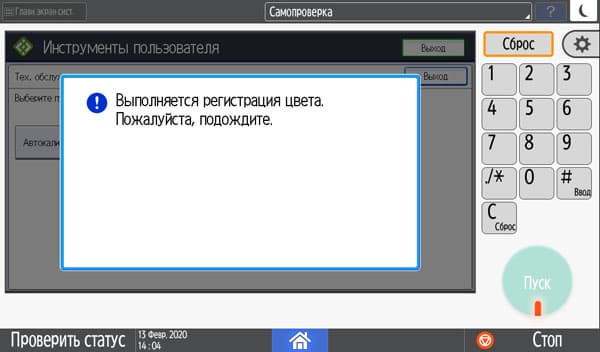Вторая корректирует неправильное совмещение цветов, ее рекомендуется проводить после перемещений аппарата или после печати больших тиражей. Никаких контрольных распечаток при этом не делается, операция занимает с полминуты.