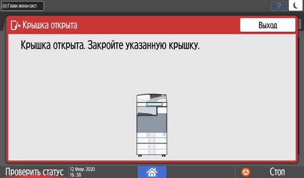 В рабочей области отображаются и сообщения системы — например, требование закрыть какую-нибудь из крышек. Некоторые такие сообщения сопровождаются наглядными иллюстрациями.