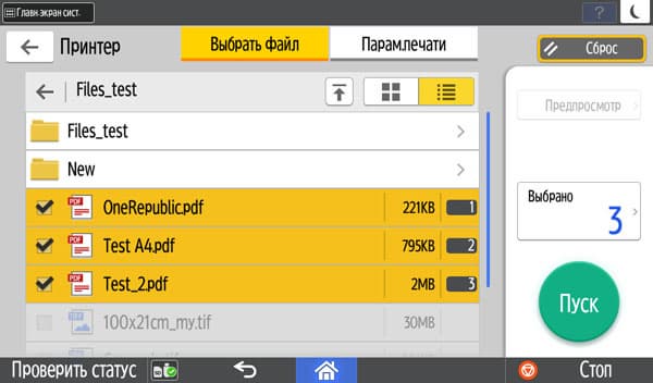 Использовался пакет из 50 листов А4, подаваемых длинной кромкой с помощью АПД.
