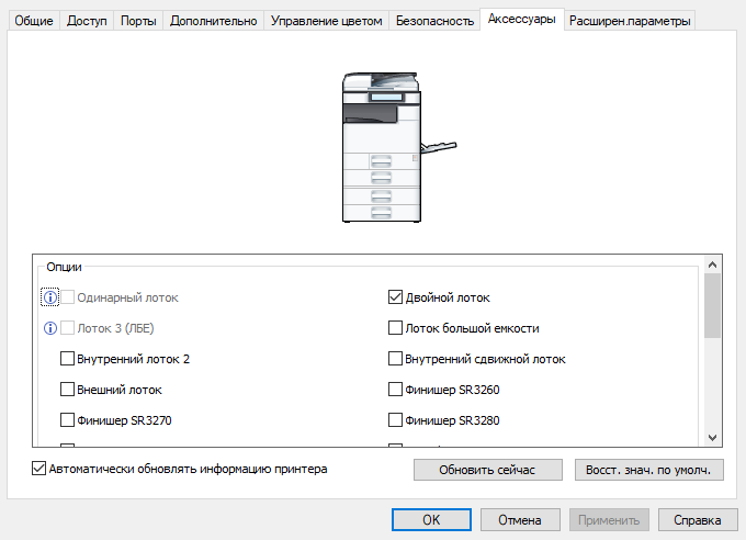 Хотя в спецификации упомянут формат SRA3, базовая поставка не подразумевает работу с ним. При необходимости работать с такими листами следует приобрести опцию «417497 Набор для печати формата SRA3» (розничная цена 5376 рублей).