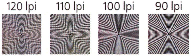 Максимальное количество различимых линий на дюйм 110-120.
