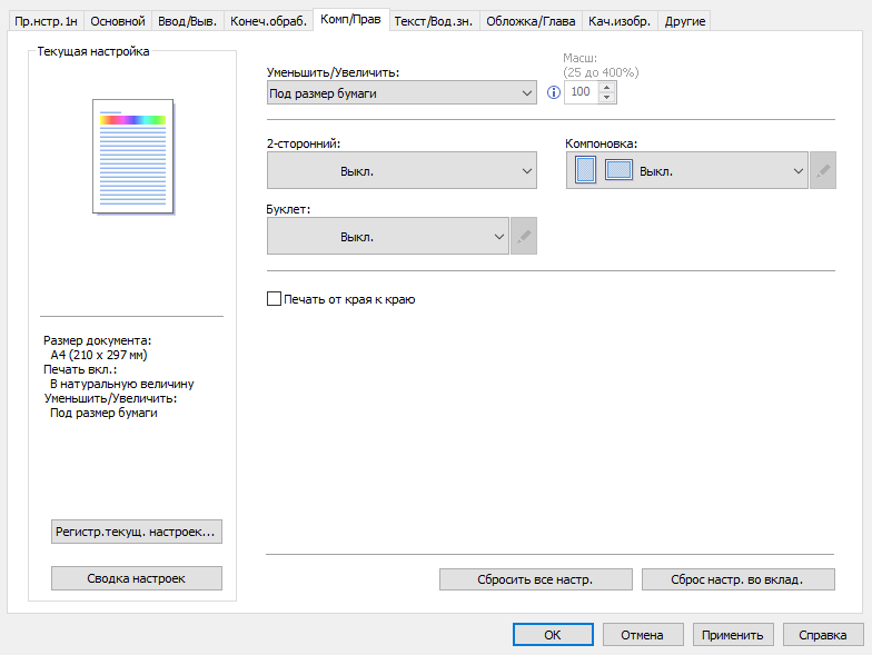 Вот пример печати с установками по умолчанию: