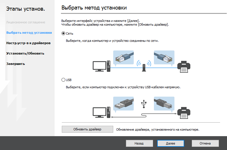 Конверты: инструкция требует загружать их в любой из лотков, кроме первого (верхнего); соответственно и в драйвере для этого лотка нельзя выбрать «Тип бумаги — конверт». И, конечно, нужно задать соответствующий тип и размер носителя в настройках. У нас нашлись конверты размером 227×157 мм, мы задавали ближайший — С5, 229×162 мм (задается не в пункте «Бумага» меню второй закладки драйвера, а в пункте «Основной — Размер документа»), дважды по десять таких конвертов через МФУ прошли нормально с подачей длинной стороной из второго лотка.