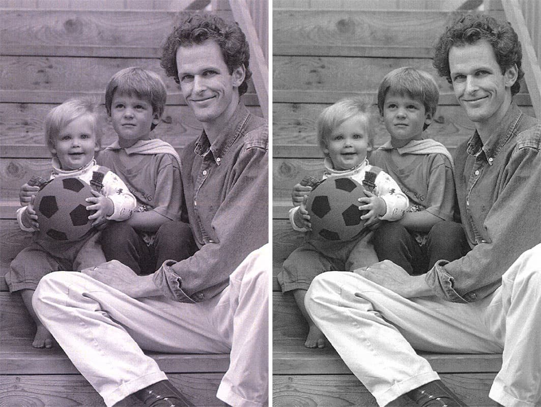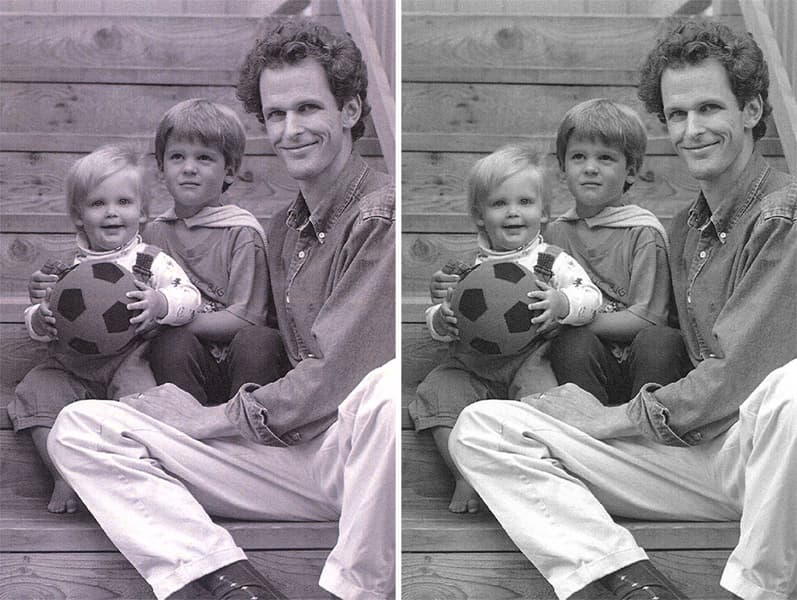 Черно-белые фотографии, напечатанные в полноцветном режиме, также приобретают нежелательный оттенок.