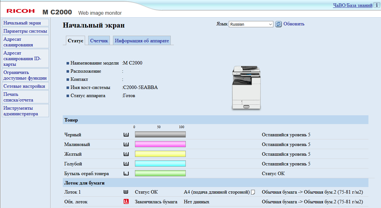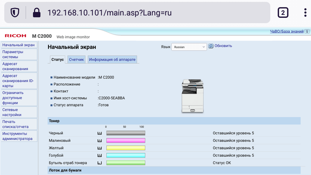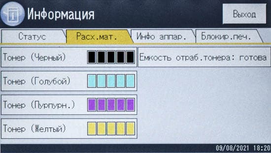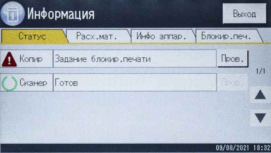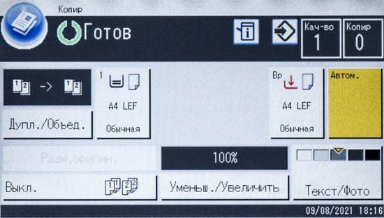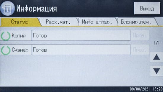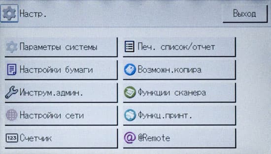 Страницы управления основными функциями на панели управления МФУ имеют общую для разных линеек идеологию, хотя и отличаются в деталях, поэтому пользователям, имеющим опыт взаимодействия с другой современной печатающей техникой Ricoh, не придется долго разбираться.