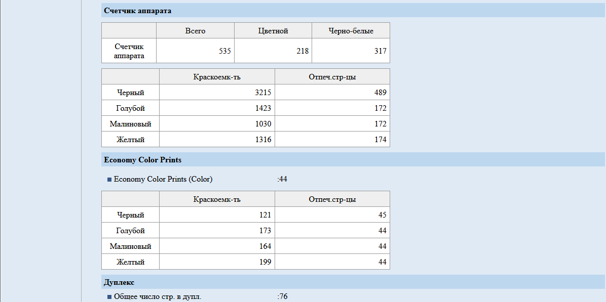 Наконец, информация об устройстве и расходных материалах: