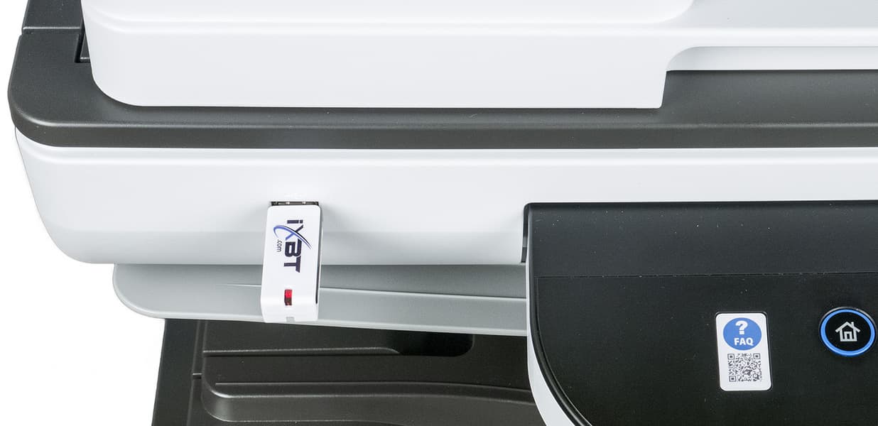 Наличие проводного сетевого интерфейса вкупе с возможностью сканирования на сменные USB-носители будет вполне достаточным для большинства случаев использования (локальное подключение к компьютеру через USB-порт также реализовано, но вряд ли оно будет задействовано сколь-нибудь часто).