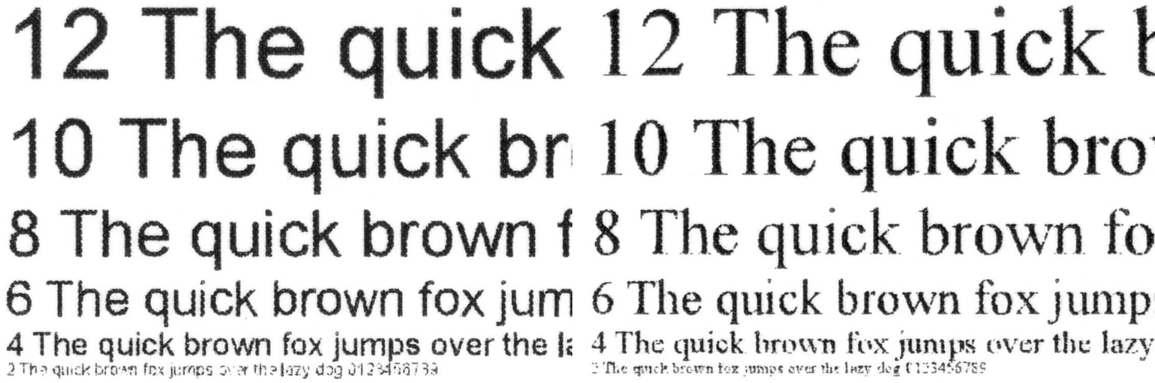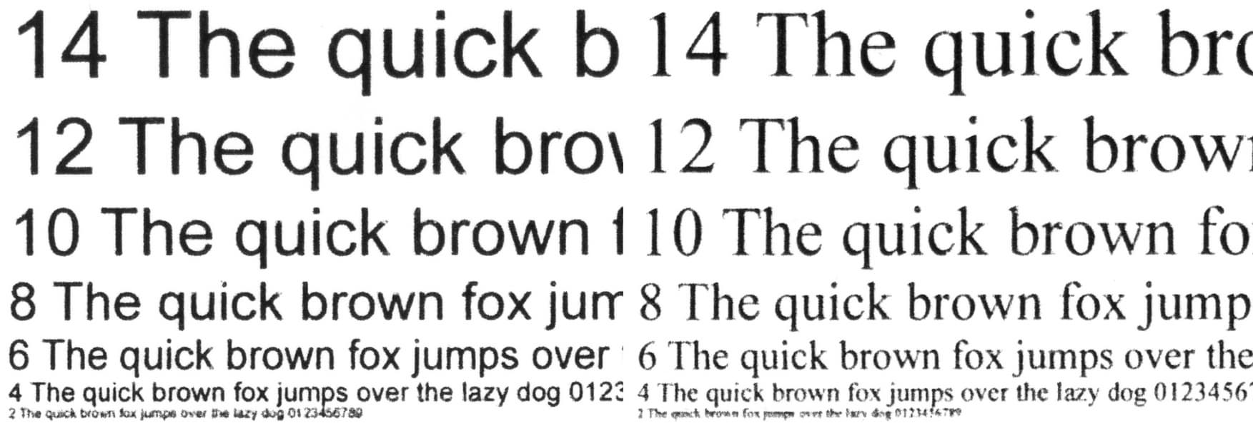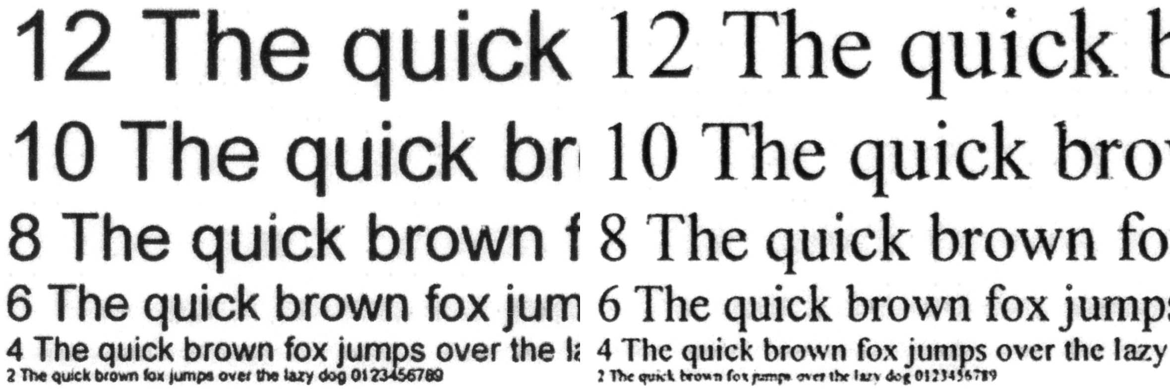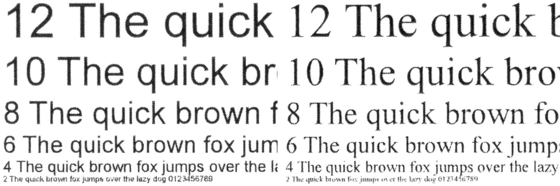 При стандартном качестве 2-й кегль не читается у любого шрифта, а 4-й у шрифта с засечками различим с некоторым трудом.