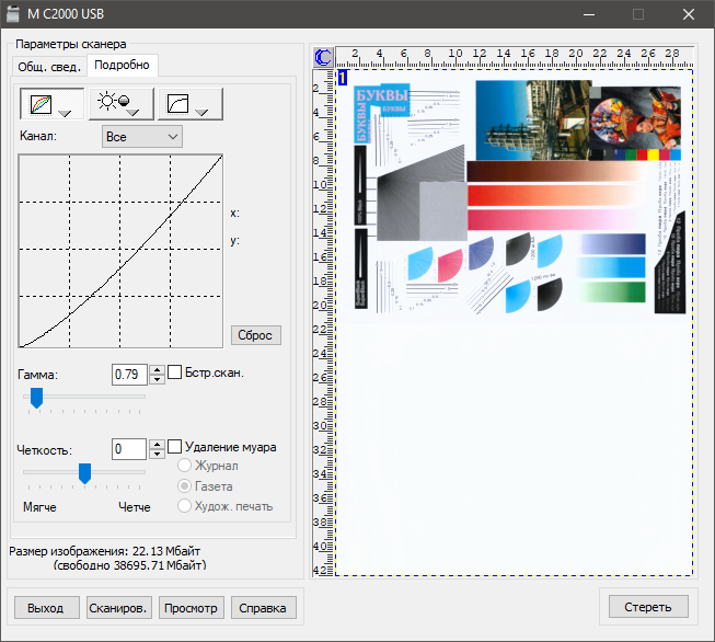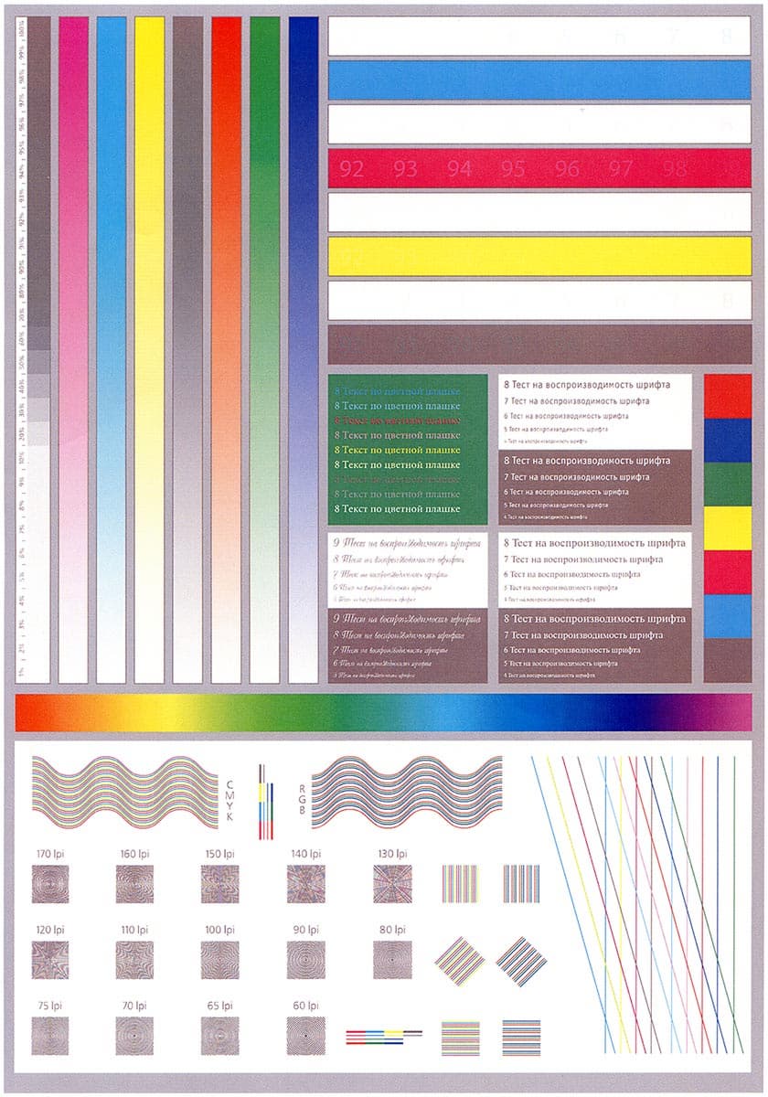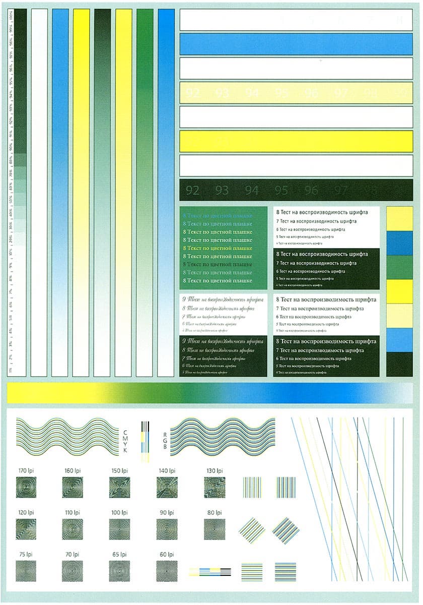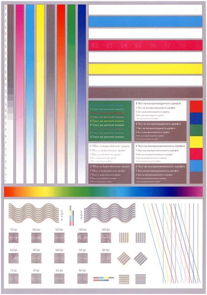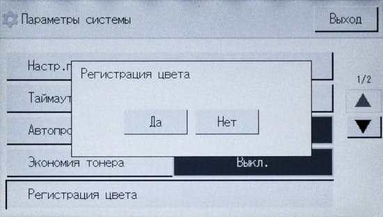 Из доступных пользователю калибровок и регулировок, связанных с качеством отпечатков, в данной модели МФУ предусмотрена регистрация цвета (меню «Настройки — Параметры системы»), ее рекомендуется производить при ухудшении качества цветной печати, в частности, после перемещения аппарата или печати больших тиражей; в аппаратах «интеллектуальной» серии список подобных процедур длиннее. Перед изготовлением образцов, сканы которых приведены ниже, эту операцию мы выполнили.
