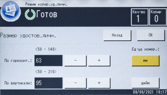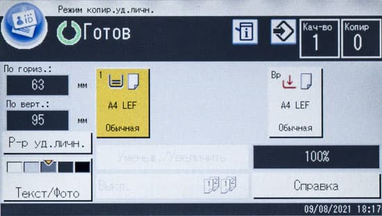 Для копирования ID-карт (небольших документов, имеющих две стороны или два разворота) предусмотрена отдельная кнопка на начальном экране.