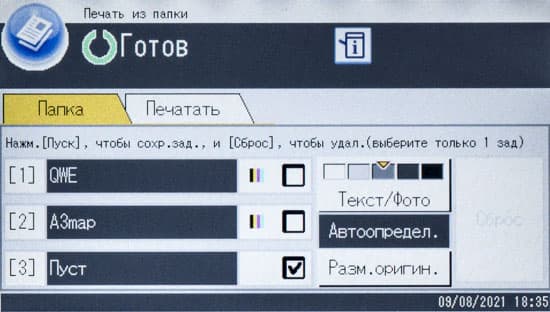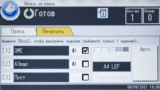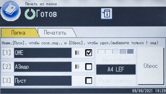 Для меню и сообщений можно выбрать русский язык, особых претензий к русификации за время тестирования у нас не появилось, разве что сокращения не всегда понятны сразу: например, по названию трудно догадаться, что «Печ.ппк» означает печать сохраненных заданий из памяти (папки), но недоумение рассеивается, как только нажмешь это кнопку.