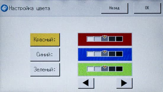 Некоторые настройки цветности вроде исключения на копии одного или нескольких цветов, которые доступны в моделях «интеллектуальной» линейки, здесь отсутствуют.