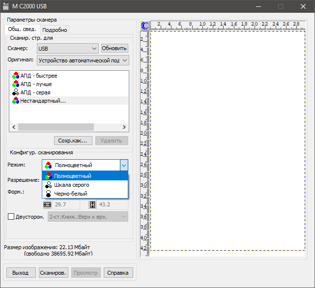 - (C) сканирование с АПД при 300 dpi,
