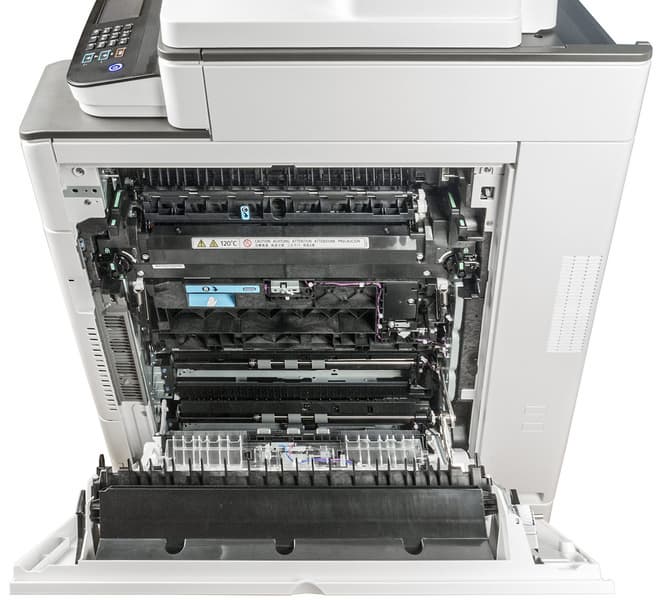 Есть еще блок термозакрепления (или фьюзер). При поставке только что перечисленные блоки имеются: в отличие от тонера, приобретать отдельно их не нужно, но заменять после исчерпания ресурса должен специалист из АСЦ.