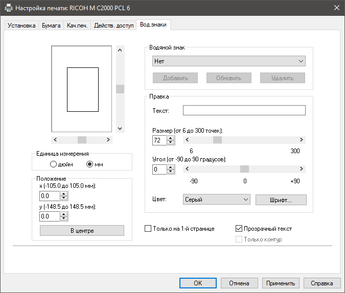 Настройки печати (для других режимов покажем ниже, в соответствующих разделах):