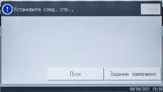 Использовался пакет из 25 листов А4, подаваемых длинной кромкой с помощью АПД.