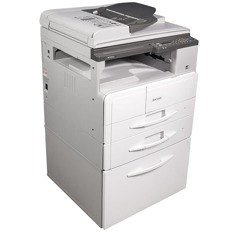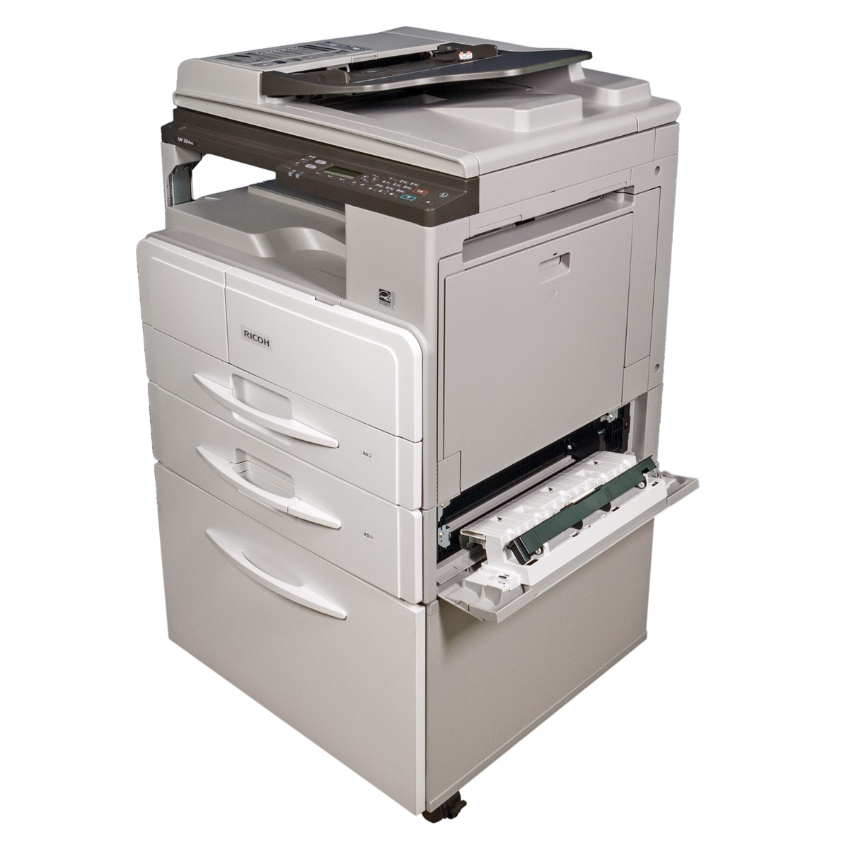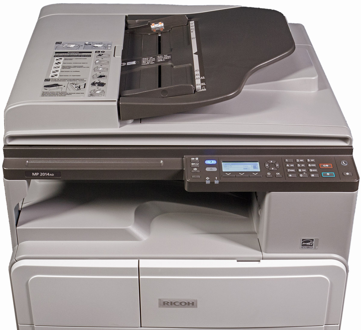 Представляем недорогое МФУ Ricoh MP 2014AD формата А3. Цветной режим у него предусмотрен лишь для сканирования, а копирование и печать только черно-белые.