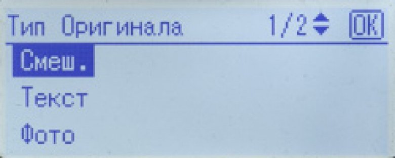 При копировании результаты получаются заметно хуже, могут появится полосы поперек движения листа. При установке типа оригинала «Фото» лучше передаются градиенты, но мелкие детали становятся размытыми; для типа «Смеш.» все наоборот: детали передаются лучше, градиенты хуже. Смена разрешения на высокое заметной разницы не вносит.