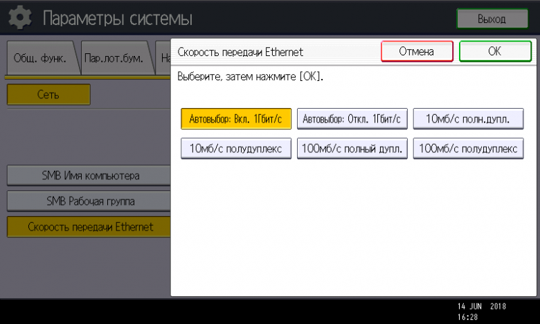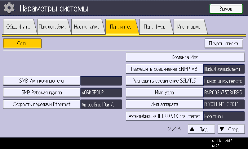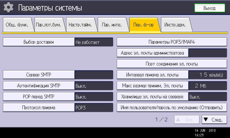 Меню русифицировано, замечаний принципиального плана к переводу нет, но некоторые частности способны подпортить впечатление. Прежде всего, это относится к сокращениям, здесь и несоответствие общепринятым нормам («Пар. инте.» — параметры интерфейса), а некоторые аббревиатуры просто вызывают недоумение: попробуйте догадаться, что такое «Пер. ф-ов» (то ли переключение форматов, то ли передача файлов) или «Сп.зад. от.врем.». Не самым удачным является и выбор шрифта: к размеру претензий нет, но начертание символов кириллицы не самое «читабельное» — у нас еще свежи воспоминания о недавно протестированном Ricoh SP C360SNw, где в этом плане дело обстояло гораздо лучше.