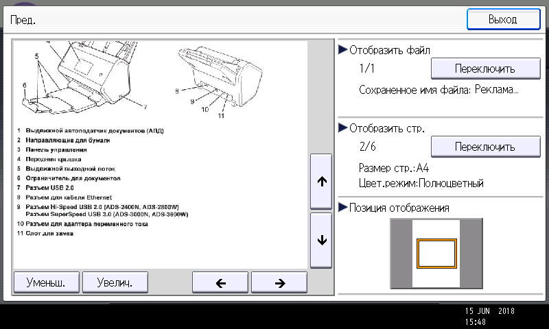Подающий лоток АПД оснащен тремя оптическими датчиками определения размера документа (конечно, для стандартных форматов).