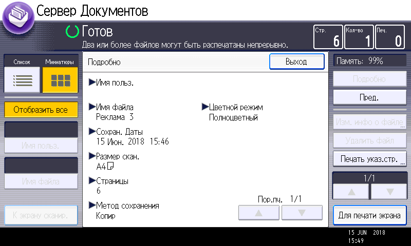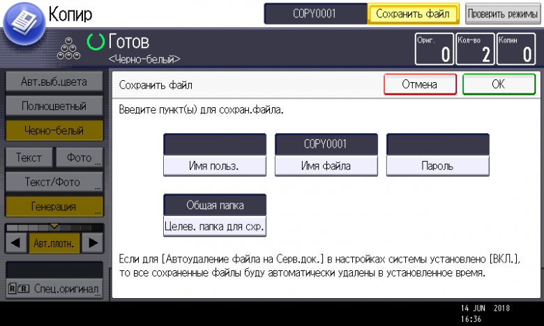Рядом с только что упомянутой кнопкой проверки режимов находится еще одна, которую никак не ожидаешь увидеть на странице копирования: «Сохранить файл».