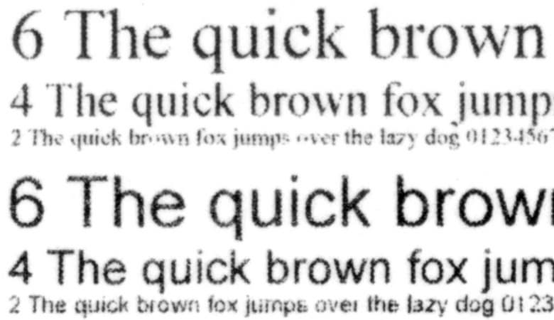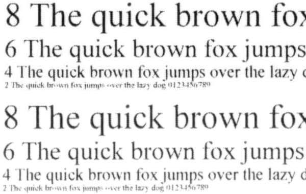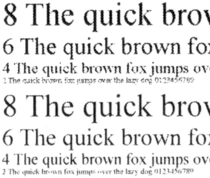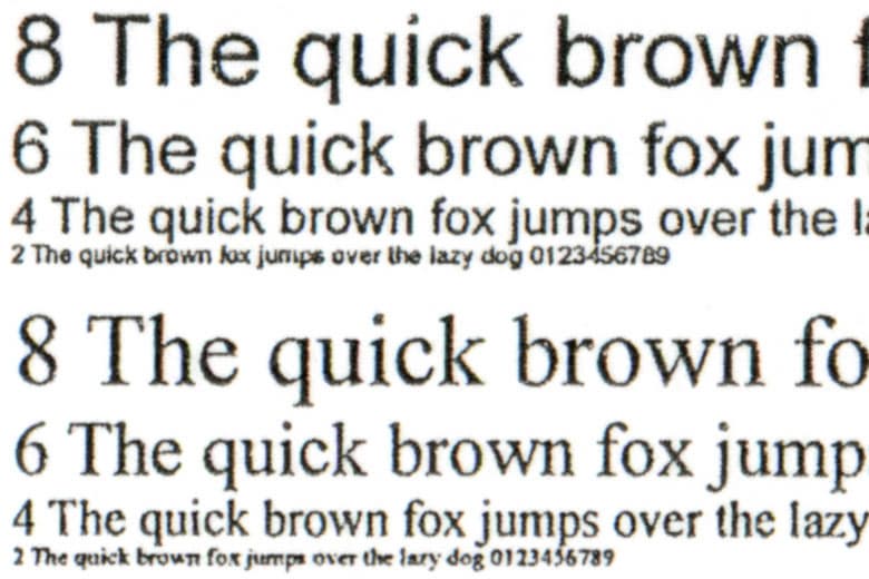 То же можно сказать и про сделанные с отпечатка, на котором отчетливо читаются шрифты 2-го кегля, копии: 2-й кегль с засечками не читается, без засечек читается с трудом, а 4-й хорошо читается для любого шрифта. Смена типа оригинала дает незначительный эффект: например, немного меняется плотность заливки.