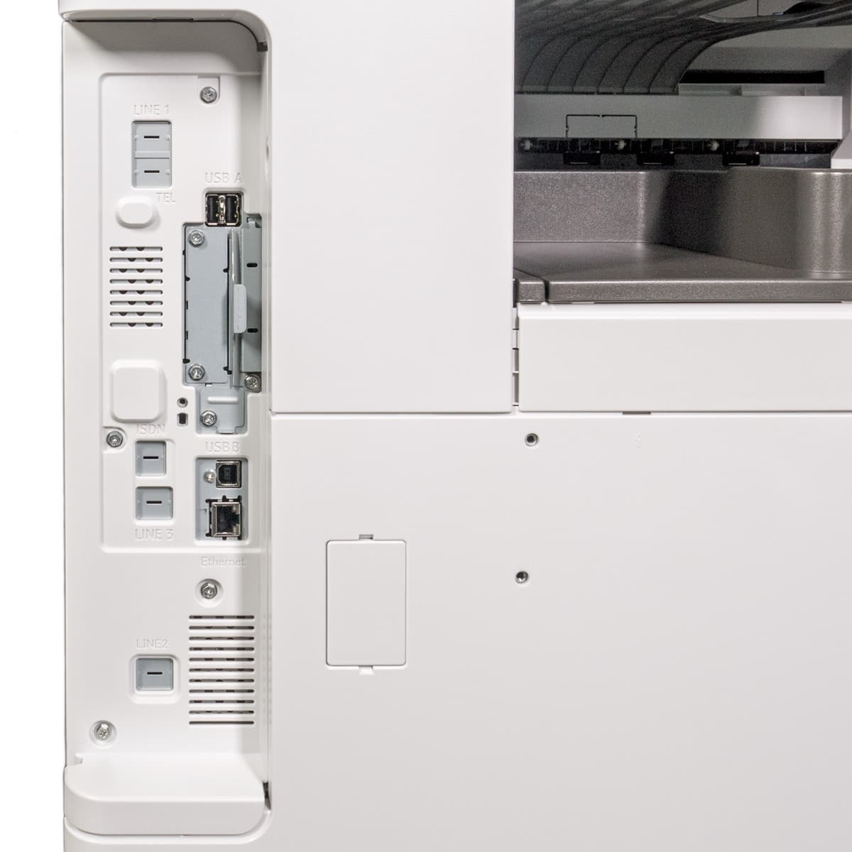 На правом боку есть еще одна откидная крышка, ее придется открывать для извлечения застрявшей бумаги.