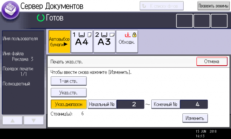 Использовался пакет из 30 листов А4, подаваемых длинной кромкой с помощью АПД.