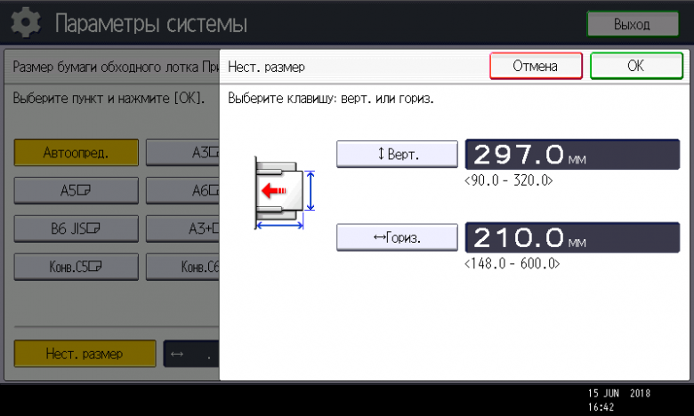 Отметим: при использовании обходного лотка диапазон размеров используемых носителей может быть сильно расширен — до 320 мм по ширине и до 600 мм по длине.