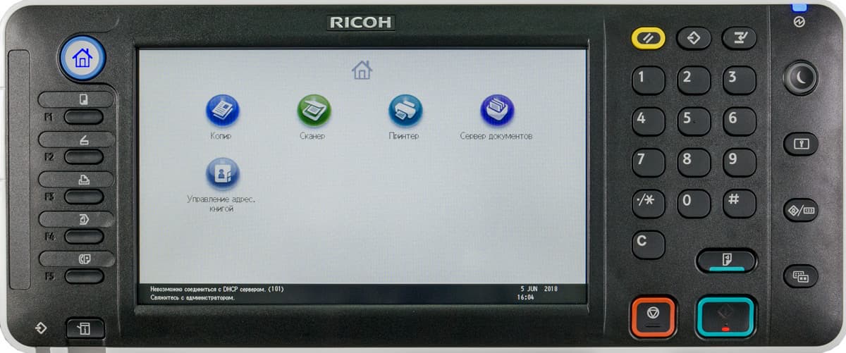 Справа от экрана кнопок больше: это и блок для ввода цифровых значений, и клавиши для запуска или отмены операций, и многие другие, включая кнопку управления режимом энергосбережения.