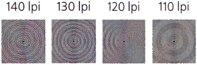 Максимальное количество различимых линий на дюйм 120-130.