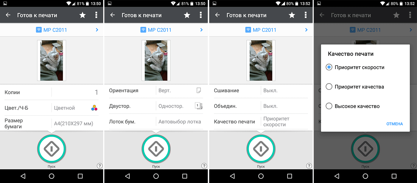 Разница в скорости между цветной и черно-белой печатью для флешки получилась серьезной — почти двукратной, в то время как при печати с компьютера она была почти незаметной.