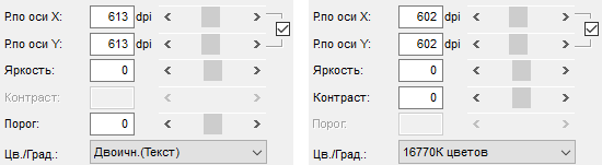 Поскольку при сканировании на сетевой компьютер отсутствует достаточно медленный этап записи файла на флешку, скорость сканирования получилась ожидаемо выше, а полученное значение вплотную приблизилось к обозначенному в спецификации. Однако это происходит лишь когда передача информации по сети происходит параллельно с протяжкой оригиналов (режим «АПД»); среди установок TWAIN есть знакомый нам пункт «АПД(предподача выкл)» — с ним скорость получается заметно меньше, особенно при одностороннем сканировании, когда не тратится время на переворот оригинала; значения приведены в двух последних столбцах через дробь.