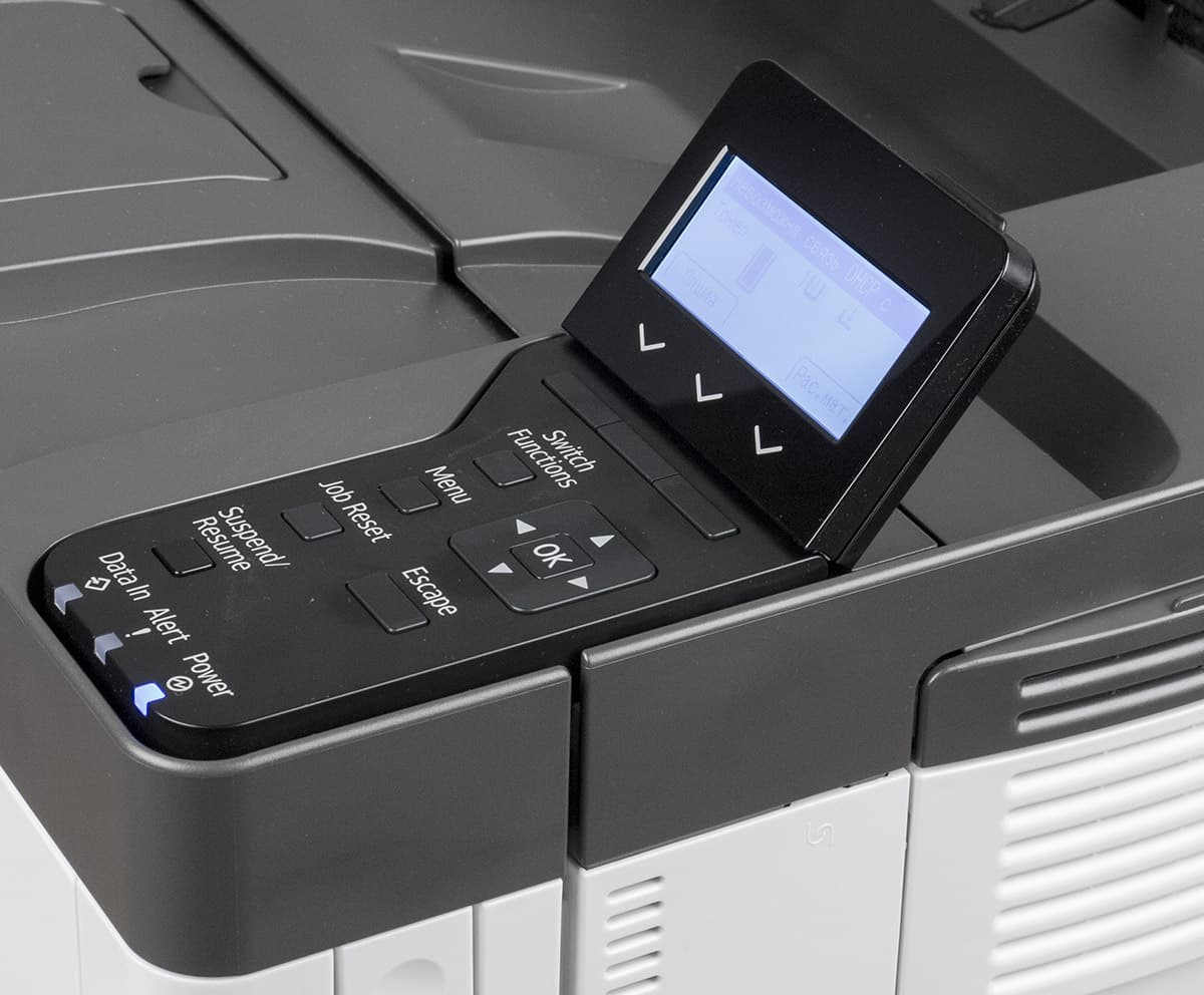 Меню является достаточно простым в освоении — не только опытный админ, но даже более-менее продвинутый пользователь вполне способен понять логику управления и добраться до нужной настройки без долгого изучения инструкций. Структура и логика как отображаемой на экране информации, так и меню настроек являются одинаковыми для многих новых принтеров Ricoh, что сокращает время на освоение пользователями и администраторами нескольких разных моделей.