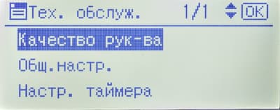 Среди прочего в меню есть страница состояния расходных материалов (но информации там немногим больше, чем на странице готовности) и счетчик (у него единственное значение: общее количество отпечатков).