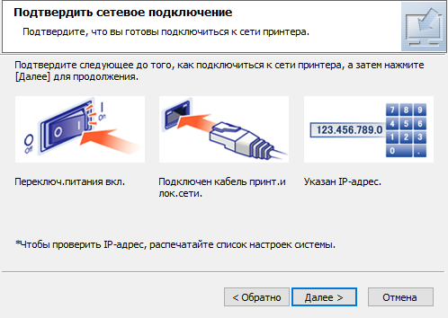 Следует напоминание, что USB-кабель не должен соединять принтер и компьютер, и это нужно подтвердить для продолжения установки. После завершения копирования файлов появляется запрос на подключение принтера: