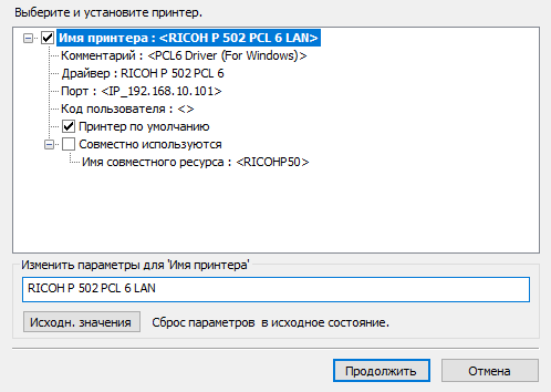 Установка заканчивается вопросом, надо ли сделать Ricoh P 502 принтером по умолчанию, после чего получаем готовый к использованию драйвер PCL 6.