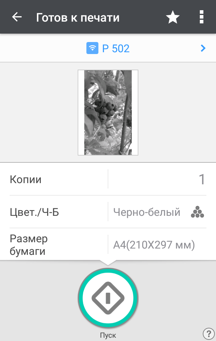 При использовании мобильного гаджета, не поддерживающего NFC, есть и другой вариант — с QR-кодом, который распечатывается на листе бумаги из меню принтера («Интерфейс хост-компьютера → Smart Device Connector → Печать QR-кода»).