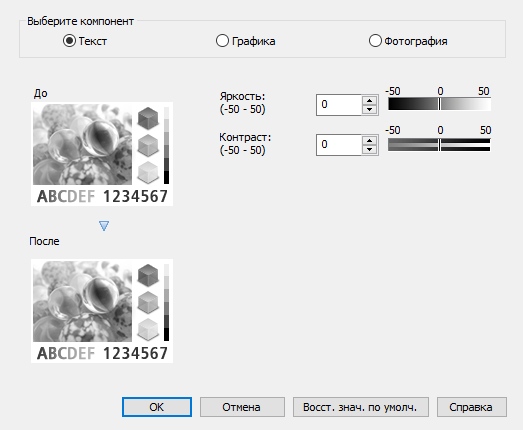 Немало установок посвящено качеству печати. Помимо разрешения (600×600 и 1200×1200 dpi), к ним относятся приоритет (скорость — нормальный — качество), а также дополнительные настройки, окно с которыми не очень корректно названо «Баланс цвета», хотя речь в нем идет о яркости и контрастности, которые можно задавать как для документа в целом, так и по отдельным компонентам: тексту, графике и фотоизображениям (если, конечно, документ смешанный).