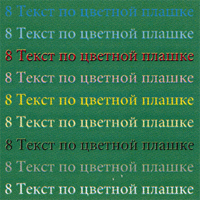 На монохромных текстовых полях с обоими разрешениями при печати нормальной и вывороткой шрифты с засечками и без читаются от 4-го кегля, декоративные шрифты — от 8-го (7-й кегль различим, но с трудом).