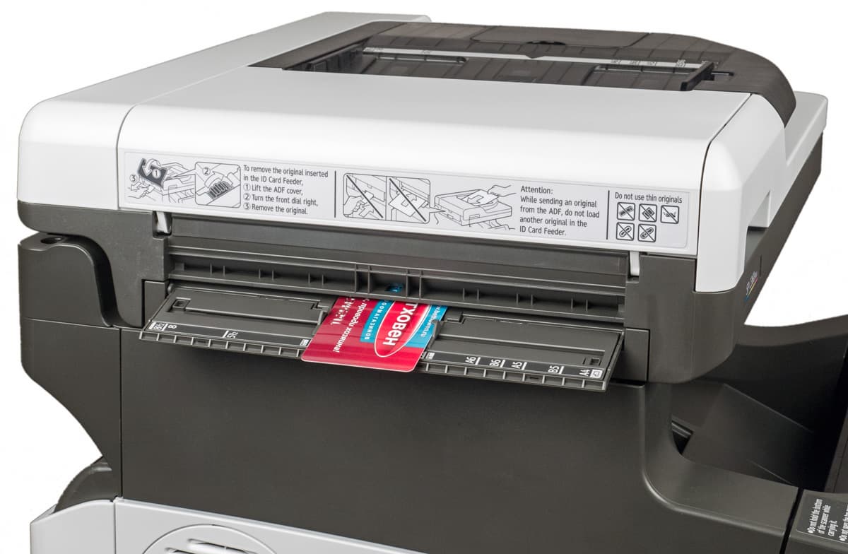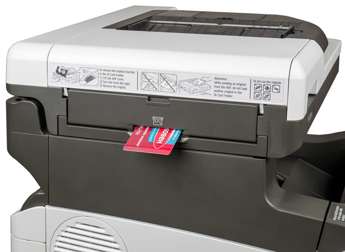 Из положительных моментов также отметим наличие однопроходного автоподатчика, существенно ускоряющего сканирование двусторонних документов, а также возможность работы с очень плотными оригиналами, включая пластиковые карты. Еще упомянем быстрый дуплекс (устройство двусторонней печати) и небольшое время выхода аппарата на готовность после включения, а также реальную возможность работы с широким диапазоном плотностей бумаги.
