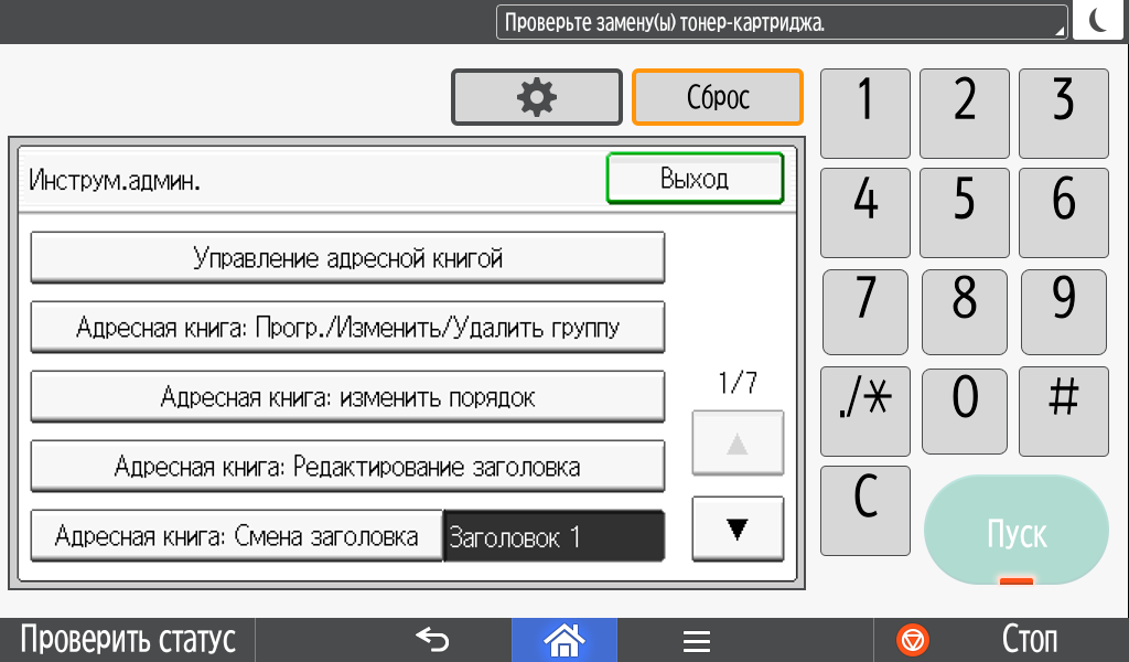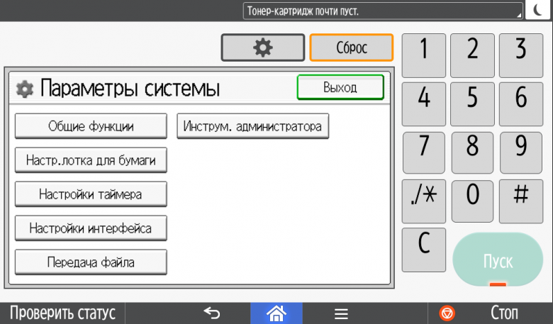 Некоторые системные настройки отрабатываются не сразу, а после перезапуска (выключения-включения) МФУ.