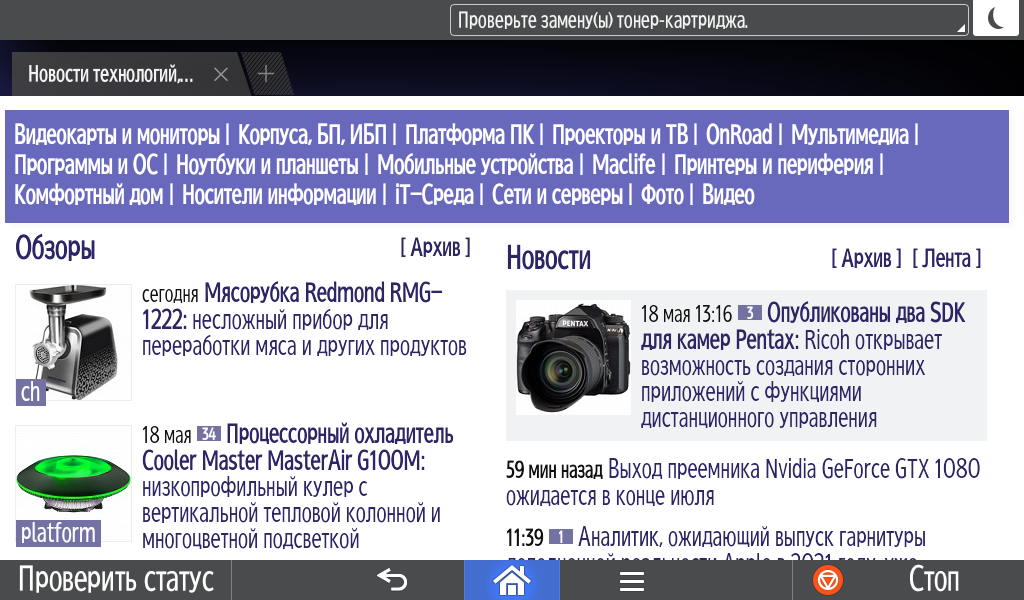 Правда, у нас не получилось проверить, что будет, например, если закончится тонер какого-то цвета.