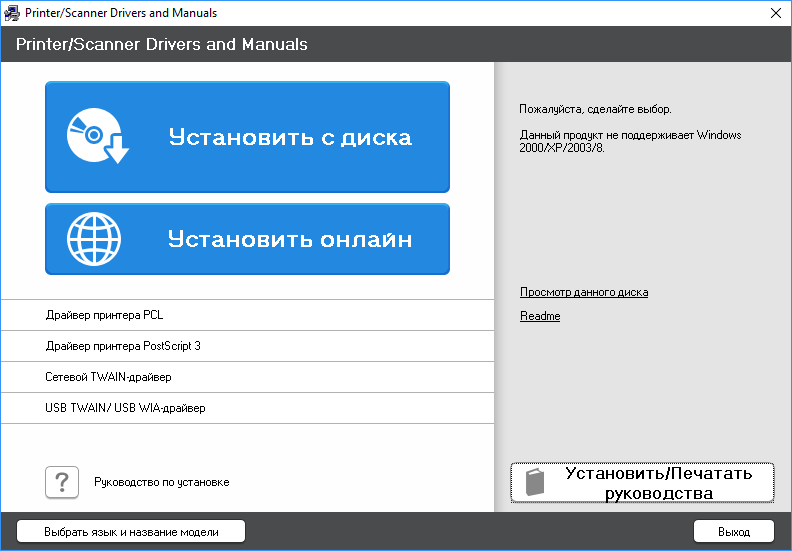 Находим и нажимаем иконку «Печать/Сканирование (Запоминающее устройство)», в открывшемся окне выбираем нужную операцию — в нашем случае печать, при установке сразу обоих накопителей далее следует окно выбора.