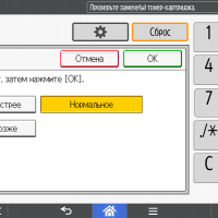 В меню есть настройки, связанные с расходными материалами. Первая касается срока появления оповещений о грядущей необходимости замены, вторая — поведения аппарата в случаях, когда замена не может быть произведена своевременно.