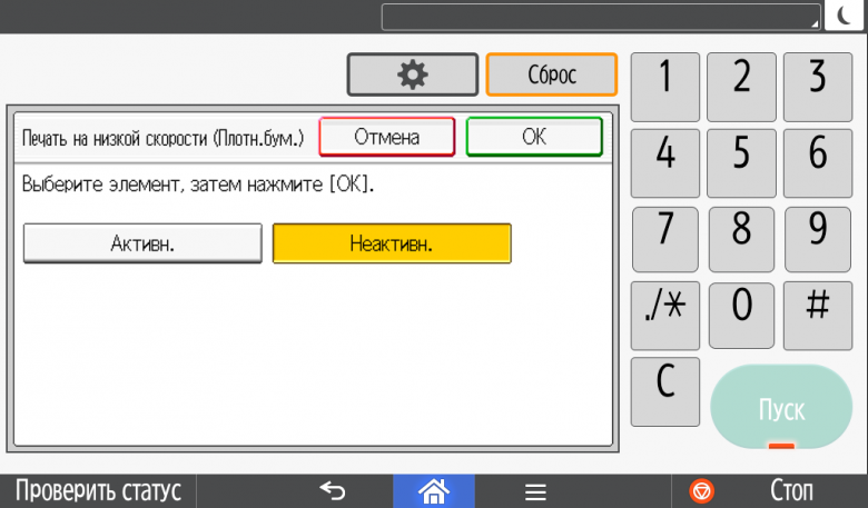 Ее следует активировать при плохом закреплении тонера на такой бумаге, но даже если этого не сделать, печать на плотных сортах бумаги при соответствующем указании типа носителя в настройках становится ощутимо медленнее.