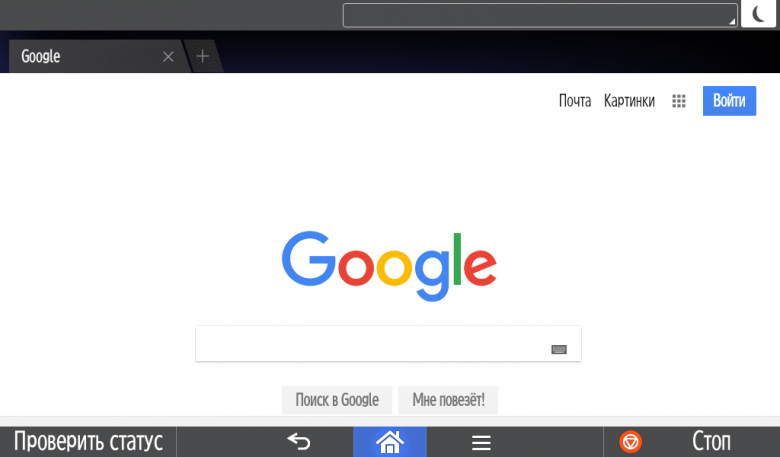 На начальном экране крупными иконками отображаются ярлыки основных функций, которые могут занимать до пяти экранных страниц. Вверху и внизу имеются кнопки меньшего размера для служебных операций, а также информационные поля, на которых отображаются некоторые системные сообщения; эти элементы присутствуют всегда, независимо от смены экранных страниц или перехода к какой-либо функции.