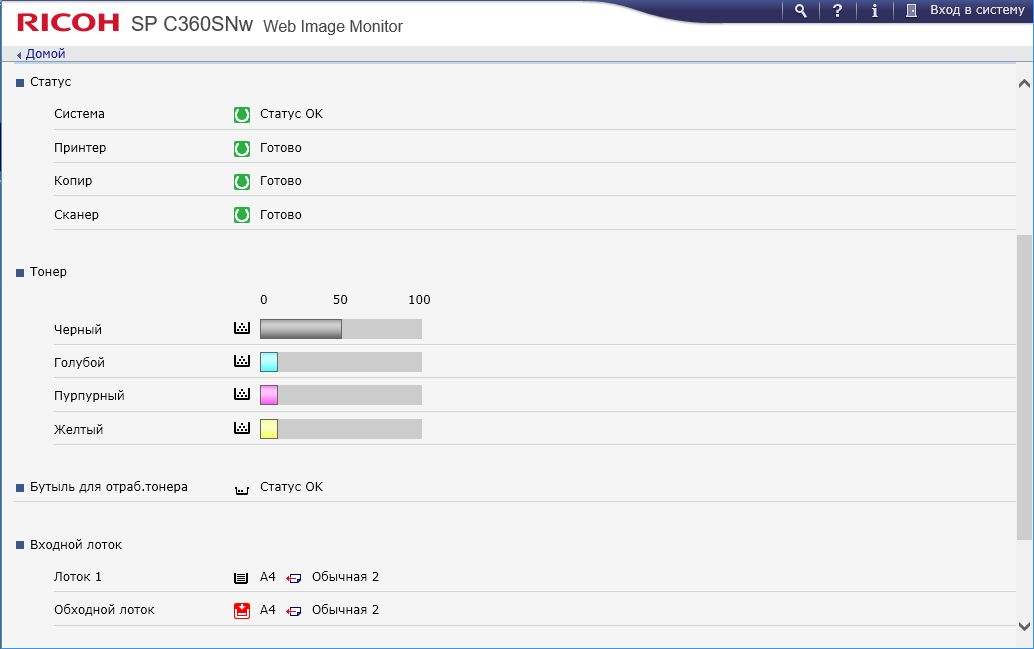 Мы рассмотрим работу с устройствами линейки на примере модели Ricoh SP C360SNw. Отсутствующая в индексе буква «F» как раз и показывает, что функции факса в этом аппарате нет, она имеется в Ricoh SP C360SFNw, а в Ricoh SP C361SFNw добавляется печать из веб-браузера и магазина приложений со смарт-панели, возможность базовой интеграции с софтом Basic Smart Integration, а также использование тонер-картриджей сверхвысокой емкости (о них скажем позднее). Отрадно, что потребителю предоставлена возможность выбора в соответствии со своими потребностями.
