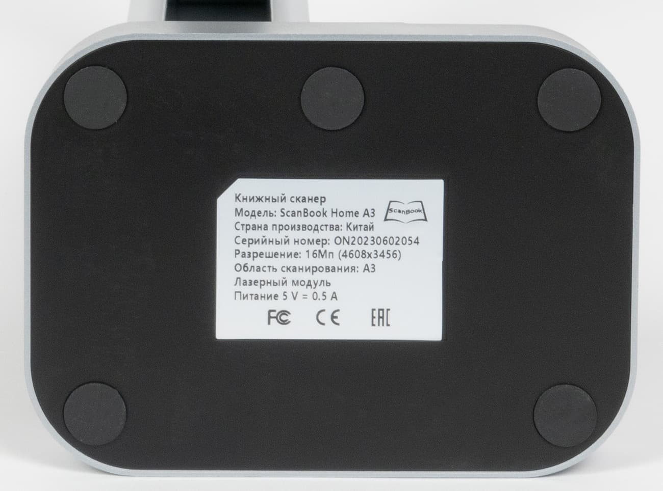На днище сканера имеются небольшие ножки в виде круглых резиновых наклеек. На имеющейся наклейке потребляемый ток обозначен на уровне 0,5 А.